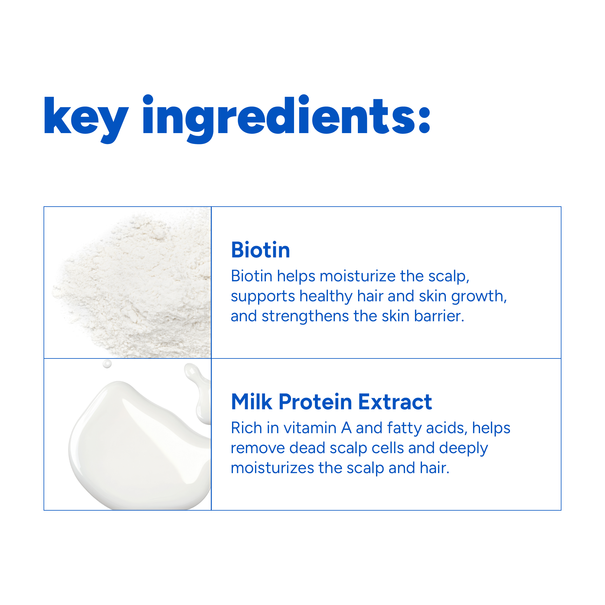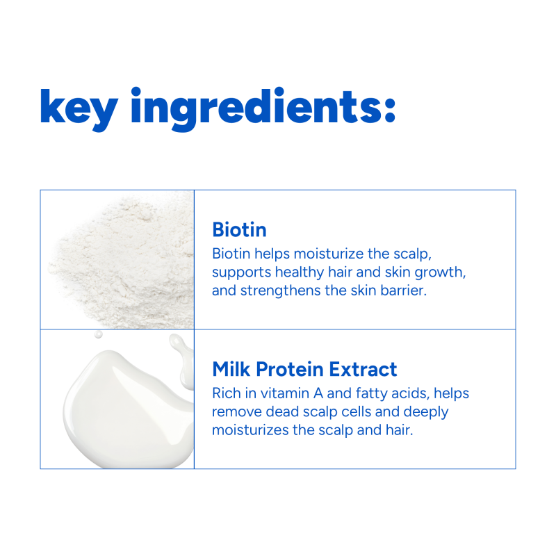 When our scalp and hair lacks proper nourishment, it can become weak and thin so it`s important to take preventative steps with ingredients like biotin and milk protein, known for their ability to support healthy hair!
